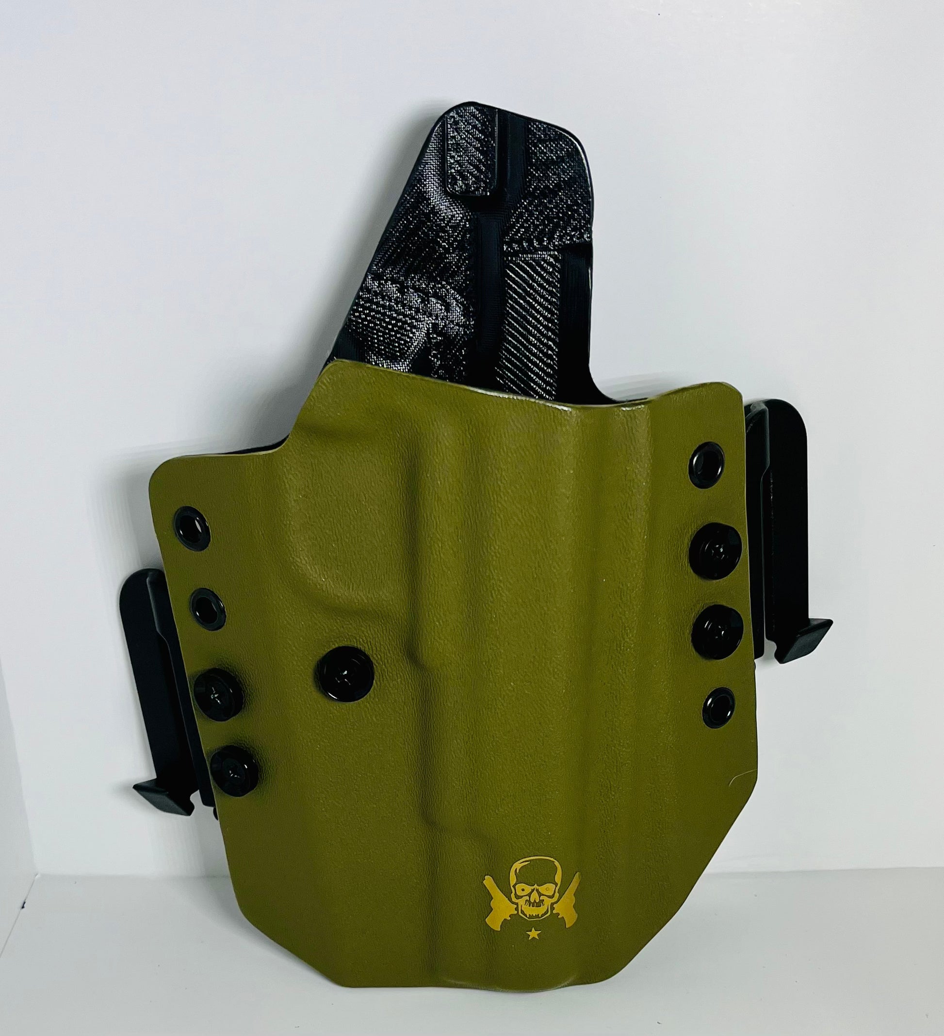 The Guardian OWB holster delivers professional-grade retention and accessibility for serious shooters. Engineered with precision molding to fit your specific firearm, this outside-the-waistband design offers rapid draw capability while maintaining secure weapon retention. The durable construction withstands rigorous training and daily carry demands. Adjustable cant and ride height allow customization for your preferred shooting position. Whether you're at the range or in the field, The Guardian provides the reliability and performance tactical professionals depend on.